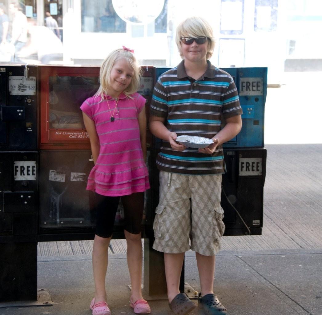 It was 57º when we arrived back to basecamp and headed downtown. Jordan & Carlye have been practicing their act during the long-drive days in the RV and it really paid off 🙂 One passer-by put in some money in the open Uke case and said to Jordan, “Buy her a coat!” (for video footage of such events, text Rochelle privately :-)).