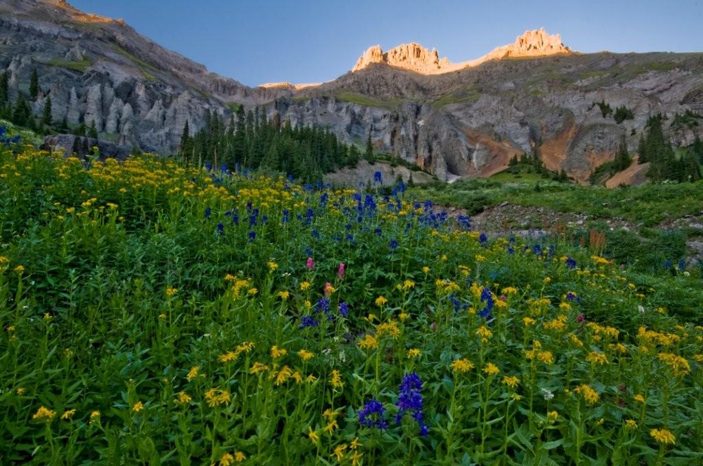Just 45 minutes up the nearest mountain lies “Yankee Boy Basin,” a very popular site for piture-taking because of the abundant wild-flowers and pretty swiss models. (Actually, the twin waterfalls are the main attraction for most of the explorers.)